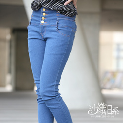 【沙織日系】腰三線金色排釦高腰牛仔長褲 (藍) 產品網址 http://tw.partner.buy.yahoo.com/gd/buy?gdid=3490036&mcode=M...