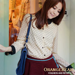 【OB嚴選】配色領植絨圓點雪紡韓版襯衫‧共二色