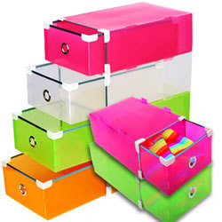 美眉們都會有很多漂亮的鞋子吧!?直接放在鞋櫃裏難免會有灰塵,放到傳統鞋盒裏呢,想穿的時候又不好找,擁有它,收納展示讓鞋款一目了然!攜帶輕便,全透明的設計風格能夠使鞋子一目了然!方便選擇自己喜歡的鞋子,鞋盒輕巧便捷,適於外出隨身攜帶。既保證鞋子的清潔,還能讓櫃子保持整潔,自己就能DIY,從此不再髒亂差的現象出現。承重力強,可以個個重疊堆放,環保、透明、鮮彩、時尚大方、堅韌牢固,堅實,牢固,韌性;不怕受潮、不怕變形、攜帶方便,清洗簡單的特點讓其成為儲鞋的專用鞋盒,不僅成為儲鞋的盒子,更可用來當做裝飾屋子的藝術品。