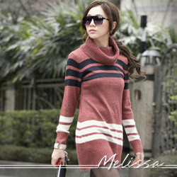 【Melissa】韓星指定‧配色條紋高領毛織洋裝