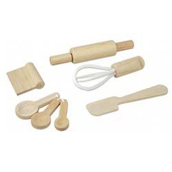 PLAN TOYS 活動積木系列- 烘培組 烘焙組包含了?麵棍、三種量匙、打泡器、木煎匙及刮刀,將日常生活的烘焙樂趣呈現,孩子可以藉由角色扮演來與其他孩子同樂學習來培養社交能力與生活技能。