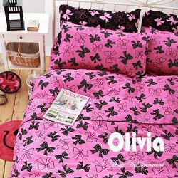 OLIVIA 《 蝶舞 桃紅 甜美姬系公主房》 特大雙人床包枕套三件組