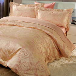 夢工場【歐洲風情】四件式緹花亮絲棉兩用被床包組-特大
