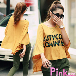 【Pink東大門】戀秋魅力˙英字印花寬版上衣,凡人仙夢巴哈