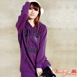 【WHALE JEANS】個性十足豹連帽長版刷毛厚T(2色)_紫色