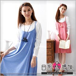 【日系小媽咪】台製。時尚甜心假二件細肩孕婦哺乳洋裝 (共五色) <台灣製>舒麗透氣柔棉好感孕婦哺乳洋裝系列 優雅甜心女孩日系風格素雅假二件設計 基本圓領長袖柔白上衣搭配細肩帶素色連身裙造型 娃娃衣高腰版型及下擺稍帶A字寬版剪裁讓腰身更纖麗顯瘦 輕鬆展現媽咪可愛俏麗又有迷人的時尚風格!!^^