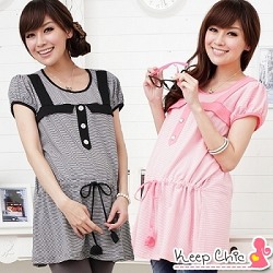 【Keep Chic孕婦裝】腰間抽繩拼接舒適長上衣(共二色),越戰風暴 online
