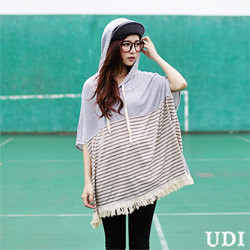 早春新品 舒適氛圍棉質寬版設計 下鬚邊的接條紋連帽T