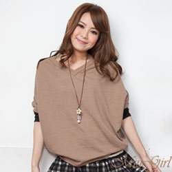 【MiuGirl】雙V領接色蝙蝠袖T(共二色)