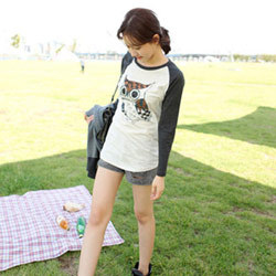 【an niu】可愛貓頭鷹克拉倫袖休閒上衣,誅神世界官方網