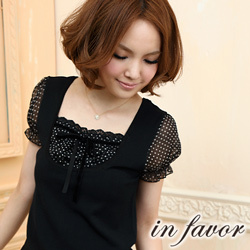 散發名媛氣息的上衣,點點雪紡配合蕾絲與蝴蝶結的裝飾,展現甜美優雅的氣質,是一款能呈現時尚質感的人氣單品!!