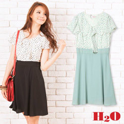 【H2O】胸口綁結愛心圖紋洋裝(共3色) 領片及胸口綁結增加豐富感, 愛心?紋雪紡質感妝點甜心氣質,530線上影音城, 高腰拼接的裙襬營造修長的身材比例!!