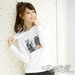 【名模衣櫃】簡約拼接印花連帽T恤-白色 ★商品材質手感 描述: 今年休閒首選款 簡約拼接印花時尚感十足 經典抽繩連帽設計 材質舒適好穿不紮身
