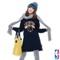 NBA-紐約尼克隊連帽長版T恤-深藍(女)