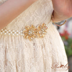【露比午茶】花朵鑲鑽珍珠勾式扣腰帶