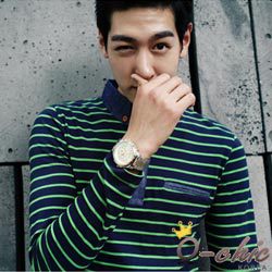 【Q-chic】仿單寧領經典雙色條紋上衣 (共二色) ☆本館所有商品100%由韓國設計進口 ☆店長嚴選韓國優質品牌、不撞杉、領先潮流非你莫屬 ☆韓國流行時尚發源地、質料為上乘、非台版仿冒的質料 ☆預購款為7-14天到貨、品質值得您花點時間等待