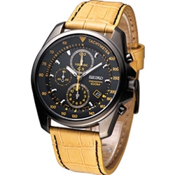 SEIKO 時尚品味 計時腕錶-黑x卡其黃時標/42mm