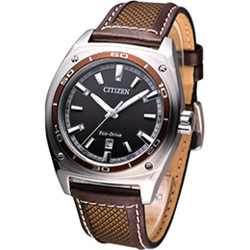 CITIZEN Eco Drive 運動時尚腕錶-帆布咖啡/44mm