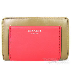 COACH LEGACY 全皮拼接雙色中夾(卡其珊瑚紅)