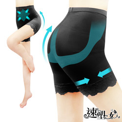 【速塑女人】涼感紗-280D心機平腹拉拉臀 - SEX蕾絲機能5分褲(典雅黑) |