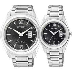 CITIZEN Eco-Drive 深情悸動光動能對錶-黑 自然簡單設計概念,純黑色錶盤下由中央刻劃出放射紋路,僅以CITIZEN品牌與Eco-Drive字樣靜止於錶盤之上,沒有複雜的炫目的配飾,僅以轉盤式造型表示日期,內裝功能更是不容小覷,用以吸收光源的太陽能板,藏於錶盤下,呼應樂活環保的生活概念,不鏽鋼錶殼與錶帶,搭配基本防水功能,可隨心所欲的環遊於世界各地,而無後顧之憂。