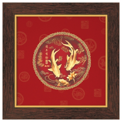 雅鑑鑫品立體金箔畫-紅卡圓形系列【連年有餘】