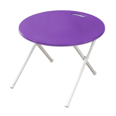 此款圓型桌面設計,美觀、安全又實用!採用粉彩陽光的春天色系,讓每一天都洋溢著歡樂的氣息,時尚明亮!可折疊設計,輕巧又不佔空間,收納時只要輕輕一拉即可收合,隨時隨地都可以輕鬆展開或收納,非常方便!且手提桌面的貼心設計,不論是外出或搬動都方便攜帶!白色粉底烤漆鐵管,腳架附有保護套,讓您在木質地板上使用也不用擔心刮傷地板喔。