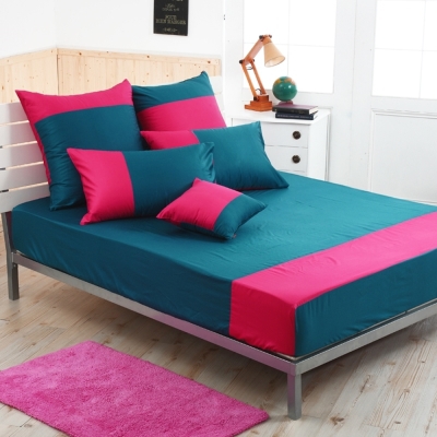 LITA麗塔(魔術方塊-土耳其藍x洋紅)雙人三件純棉薄床包枕套組 魔術方塊讓你輕鬆變化佈置藝術 打造耳目一新的視覺新體驗