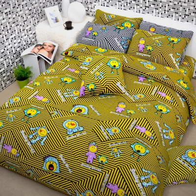 【Smiley World】《餅乾怪獸》雪芙絨三件式單人被套床包組(黑黃)