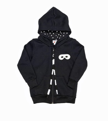 即使只是件超百搭的黑色連帽外套,Beau LOves發揮英倫著名的悶騷個性:先在連帽的內裡安排了無數白點點,連帽從背後看起來整個好淘氣啊~,咕溜好拉的YKK拉鏈加上了黑白條紋的小布條,讓幼咪咪小手兒也容易操作拉鏈,而胸口上那白色超人面具不開玩笑彷彿有聚光效果,整件外套彷彿打上spotlight,好跳好好看,是件尋它千百度的好東西啊!