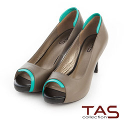 TAS 時尚基因 韓系撞色層次魚口高跟鞋-時尚灰