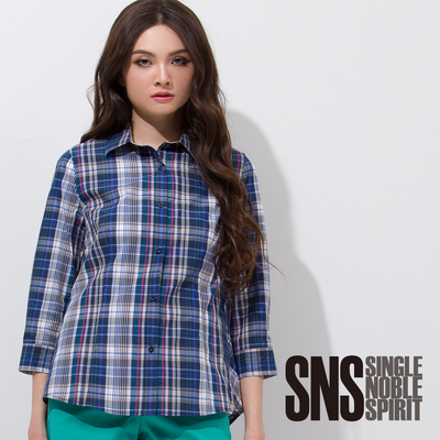 SNS 方格紋七分袖襯衫(共二色)詳細介紹如下~大家一起努力變水水吧