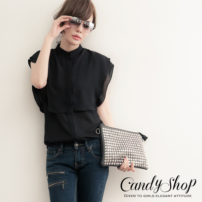 CANDY小舖 自我展現水母垂片荷葉雪紡襯衫(黑色)