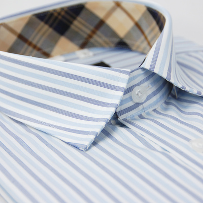 金?安德森 經典格紋繞領純棉藍色粗條紋長袖襯衫