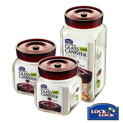 LOCK&LOCK樂扣樂扣 單向排氣閥玻璃密封罐3入組(LLG553SP3-01),時尚居家必備!