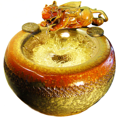 以聚寶盆型式陶甕加沉水馬達加水中燈組合而成。放置於室內財庫位置,招財進寶聚客,源源不絕。