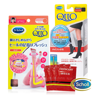 【英國爽健Scholl】日本Qtto系列-睡眠專用大腿襪L+久坐型L(贈Glysolid神奇乳霜5ml)