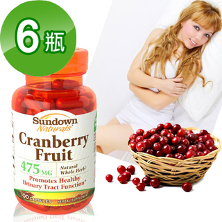 【美國Sundown日落恩賜】天然紅寶石蔓越莓-100粒/瓶(6入組)知名部落客強力推薦的好物!