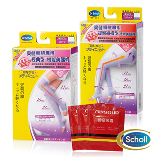 【英國爽健Scholl】日本Qtto系列-睡眠專用大腿襪+提臀褲襪(贈Glysolid神奇乳霜5ml)