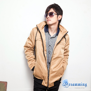 (愛美必備)穿搭介紹 【Dreamming】高領抽繩連帽風衣夾克外套(共三色)