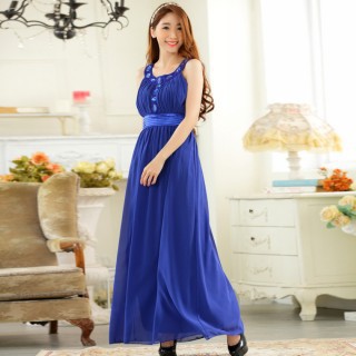 【白色戀人中大尺碼】藍色手工釘珠寶石雪紡長禮服