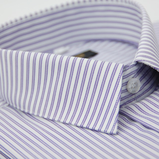 (愛美必備)穿搭介紹 【金安德森】白底紫條紋領裁斜短袖襯衫