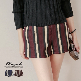 【MAYUKI】時髦配色條紋鬆緊短褲-S.M.L