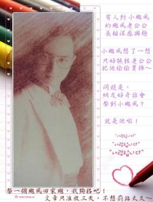 《風中有情天》在笑中的愛(下) ◎小颱風 「我愛你因為妳是我老婆」颱風老公公嘻皮笑臉的說。 「這個不算...