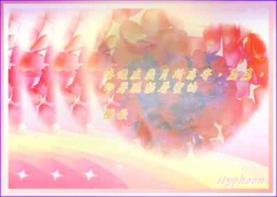 寫在前面:前一篇文章,其實是讀小說的心情,別太認真^_^。現實生活的小颱風,在這首詩裡。^_~【吻痕裡的戀歌】...