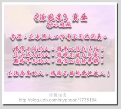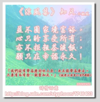 《涼風集》知足 ◎小颱風並不圖家境富裕,心只盼享受所有;亦不拒粗茶淡飯,願只在幸福永久!********* ...