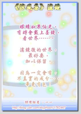 ◎小颱風眼睛如果怕光,有時會戴上墨鏡,看世界……。濾鏡後的世界,最好要,加以保留。因為一定會有,不真實的成分…...