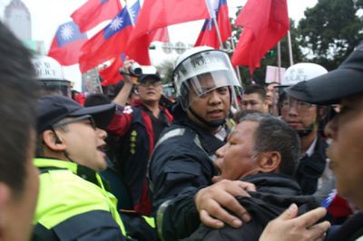 支持服貿民眾和警爆發口角 支持服貿團體1日下午到鎮江街口聚集,1名支持服貿民眾和警方爆...
