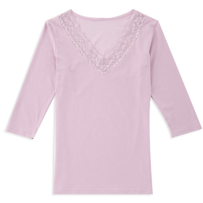 熱門! 名人最愛的七分袖蕾絲涼感美容上衣 (藕紫)