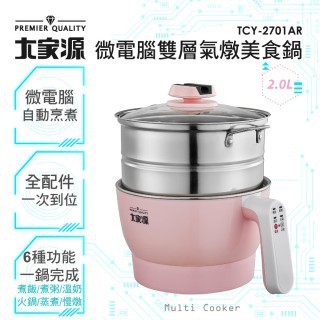 【MOMO購物】【大家源】2L微電腦304不鏽鋼雙層防燙-附蒸籠-美食鍋(TCY-2701AR)-活動